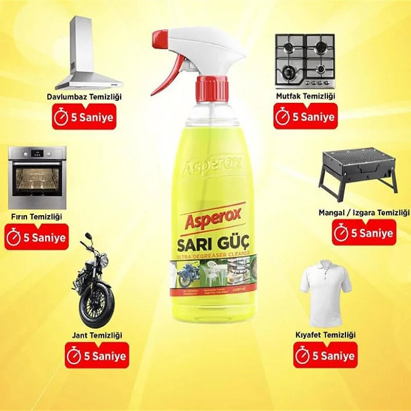 تمامی چربی های سخت روی سطوحی مانند اجاق گاز، کاپوت، هواکش، شیر آب، سینک ظرفشویی، میز آشپزخانه، کابینت آشپزخانه، سنگ مرمر، کاشی و سرامیک، آلومینیوم، فولاد ضد زنگ، قابلمه، مبلمان شهری، PVC ، موتور سیکلت، دوچرخه ، رینگ های اتومبیل و . . . را به خوبی از بین می برد.