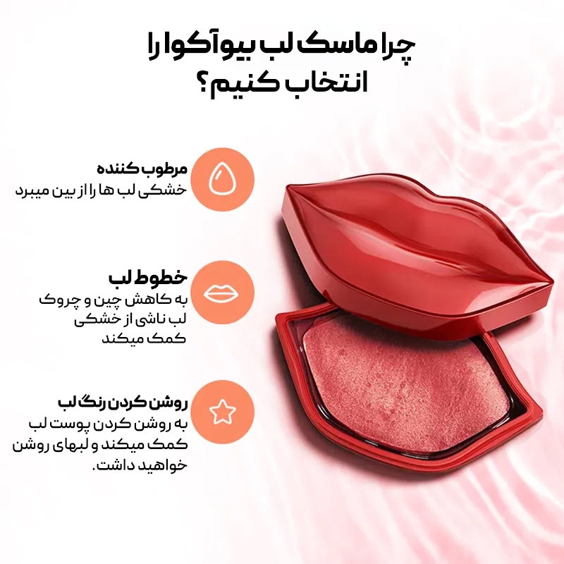 سپس یک ورق ماسک گیلاس بیوآکوا را از جعبه بیرون آورده و روی لبهای خود قرار دهید
