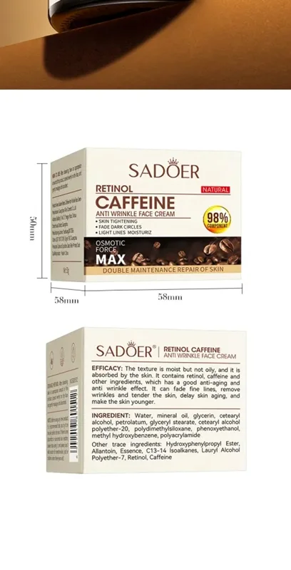 کرم جوانساز و ضد چین وچروک کافئینتهیه شده از عصاره قهوه است و حاوی ریتینول است و یک کرم