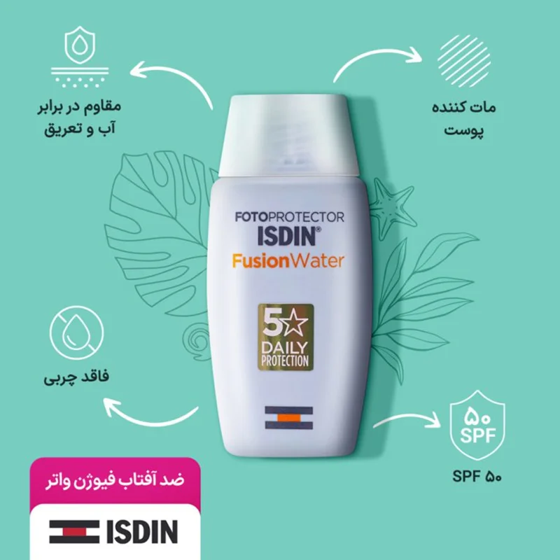 ضد افتاب ایزدین فیوژن واتر یکی از پرفروش ترین ضدآفتابها است که برای درمان مشکلات پوستی و محافظت عمیق از پوست در برابر اشعهها توسط پزشک تجویز میشود. این ضد آفتاب بافت فوق العاده سبکی دارد و فاقد الکل، رنگ و چربی است. بنابراین به هیچ عنوان روی پوست شما رد چربی و چسبندگی به جا نمیگذارد. خیالتان از بابت اینکه پوستتان براق نمیشود؛ راحت باشد. این محصول ساخت کشور اسپانیا است و 50 میلی لیتر حجم دارد.